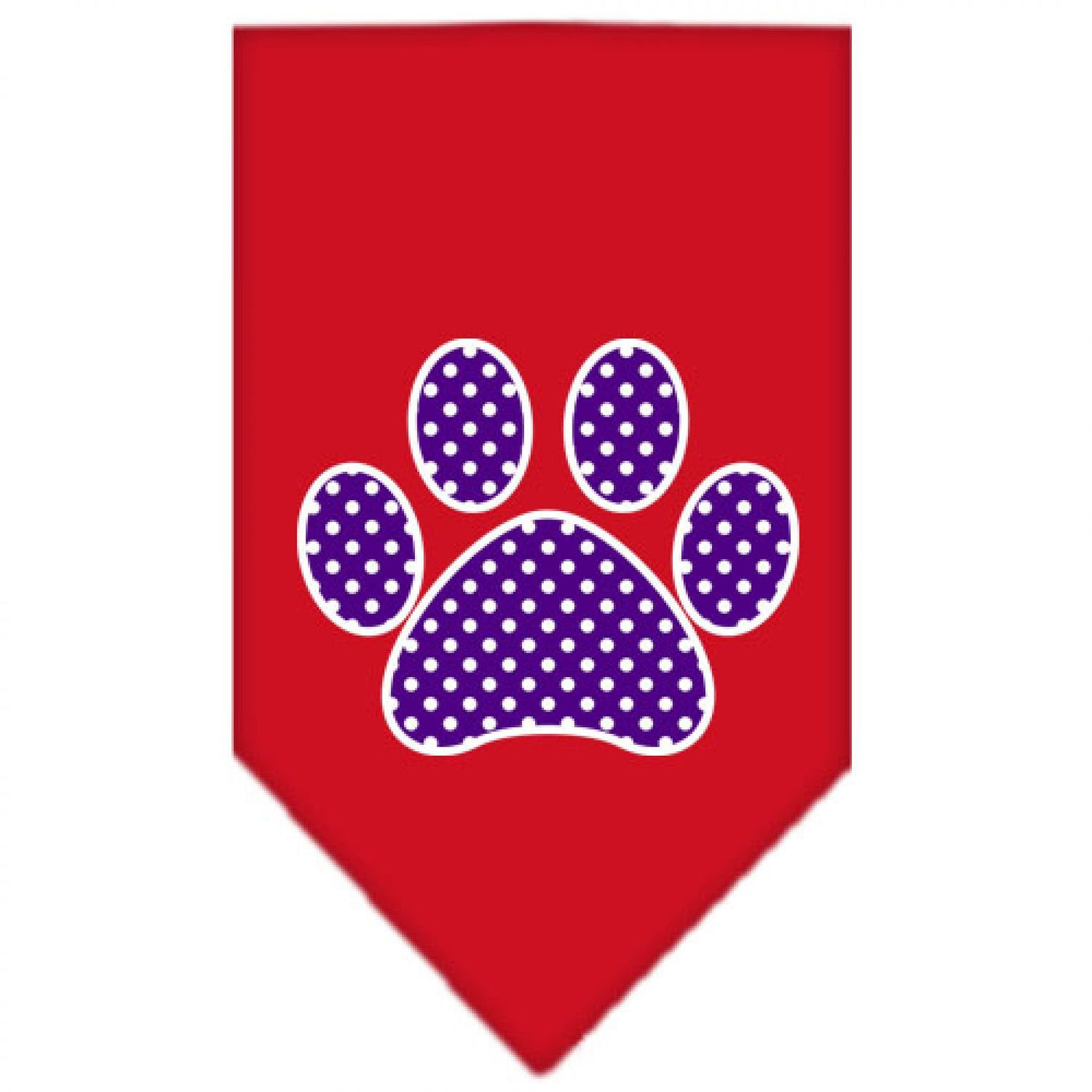 Pet and Dog Bandana Screen Printed, "Purple Swiss Dot Paw" Red Large
