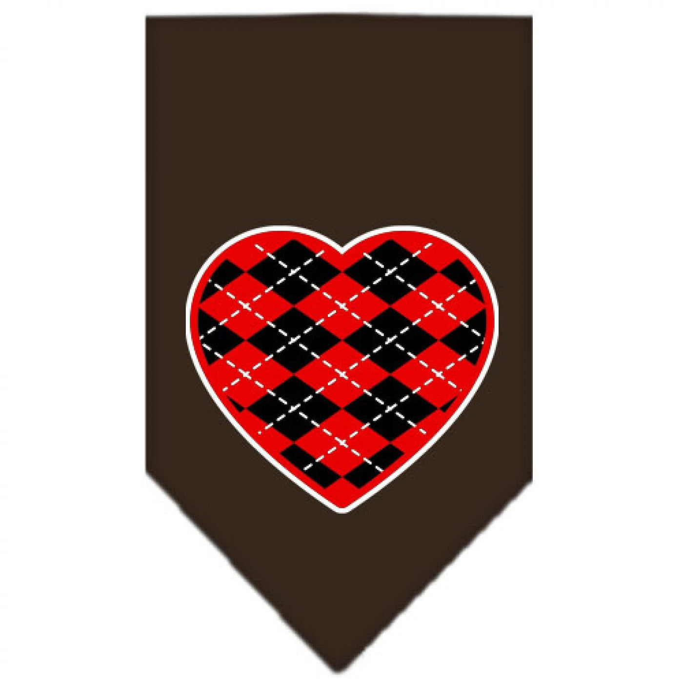 Pet and Dog Bandana Screen Printed, "Red Argyle Heart" Cocoa Large