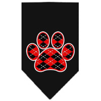 Pet and Dog Bandana Screen Printed, "Red Argyle Paw" Black Small