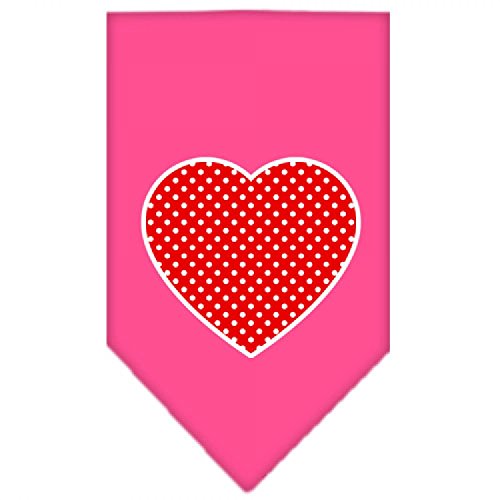 Pet and Dog Bandana Screen Printed, "Red Swiss Dot Heart" Bright Pink Small