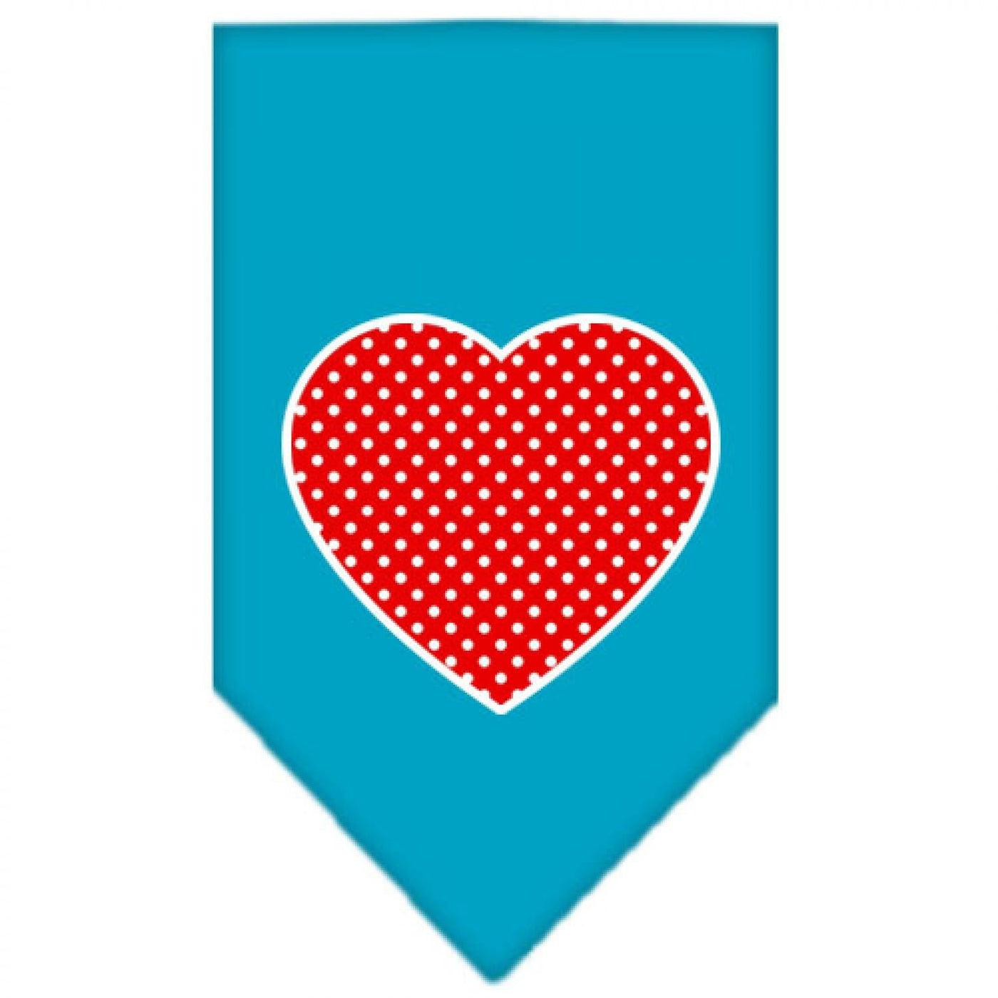 Pet and Dog Bandana Screen Printed, "Red Swiss Dot Heart" Turquoise Large