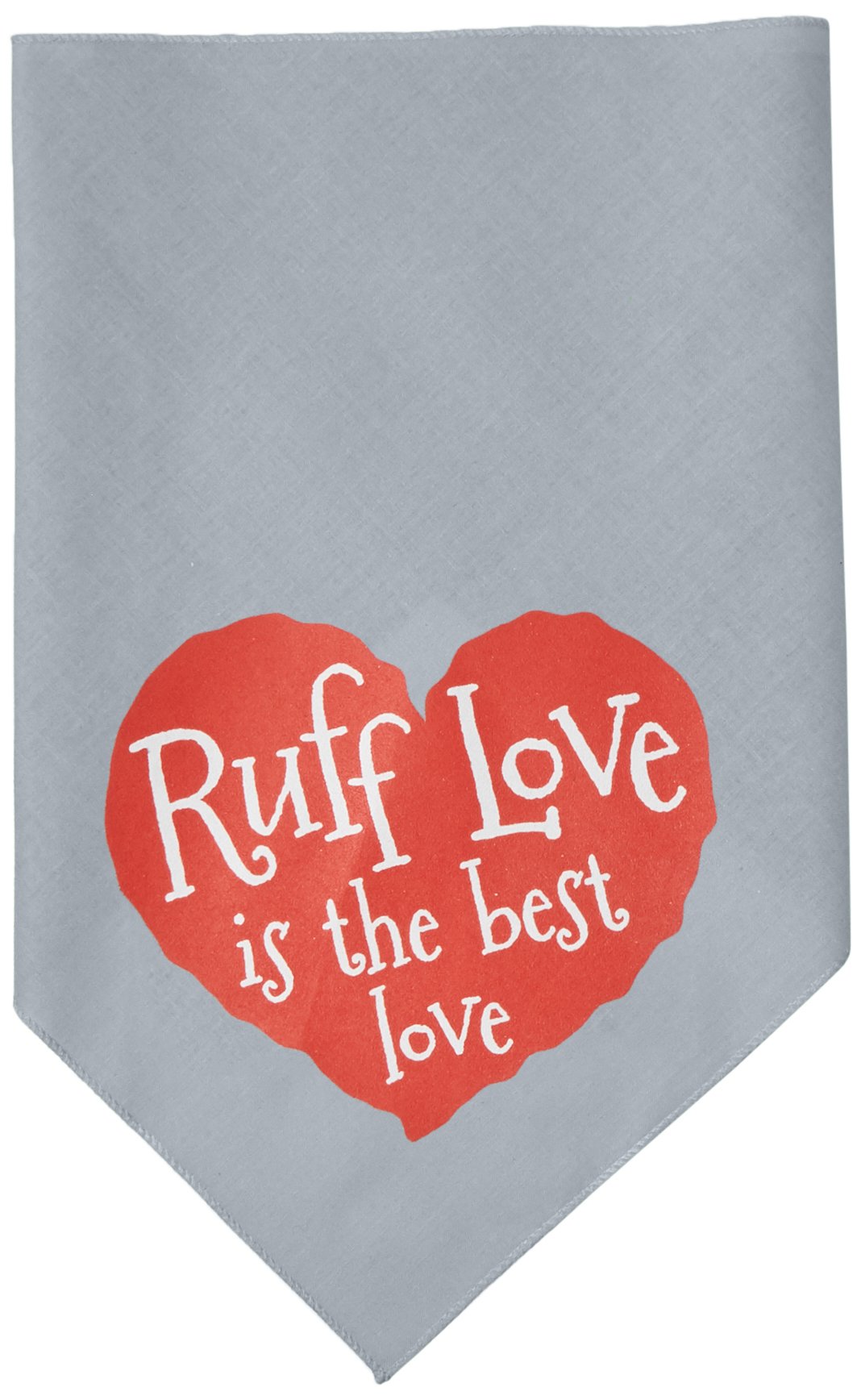 Pet and Dog Bandana Screen Printed, "Ruff Love" Gray Large