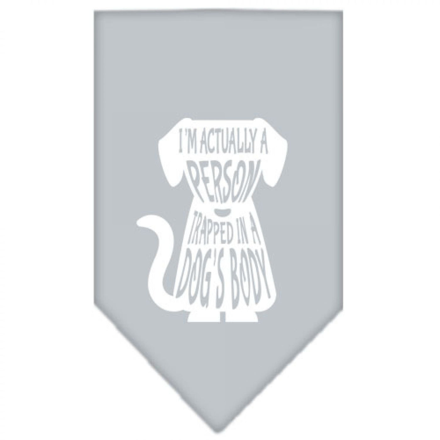 Pet and Dog Bandana Screen Printed, "Trapped In A Dog's Body" Gray Small