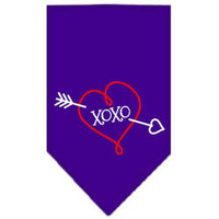 Pet and Dog Bandana Screen Printed, "XOXO" Purple Large