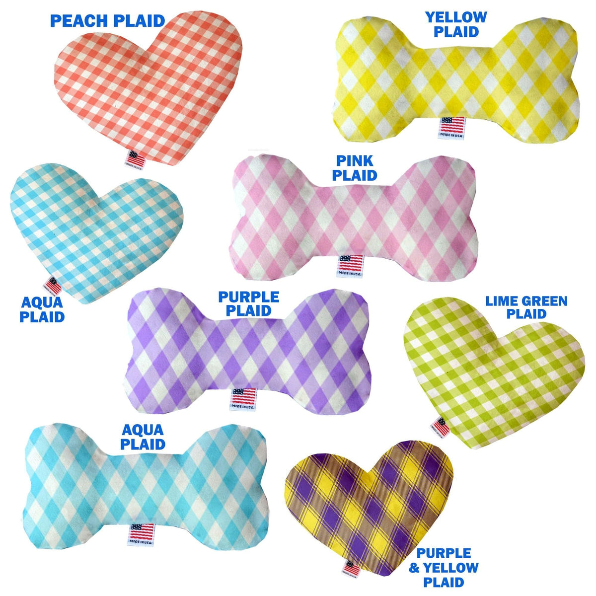 Pet and Dog Plush Heart or Bone Toy, "Plaids Group" (Available in different sizes, and 7 different pattern options!)