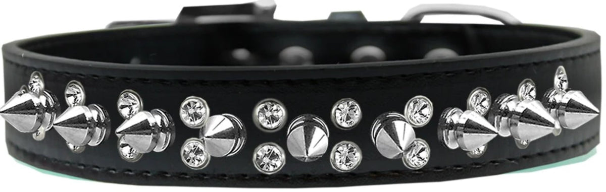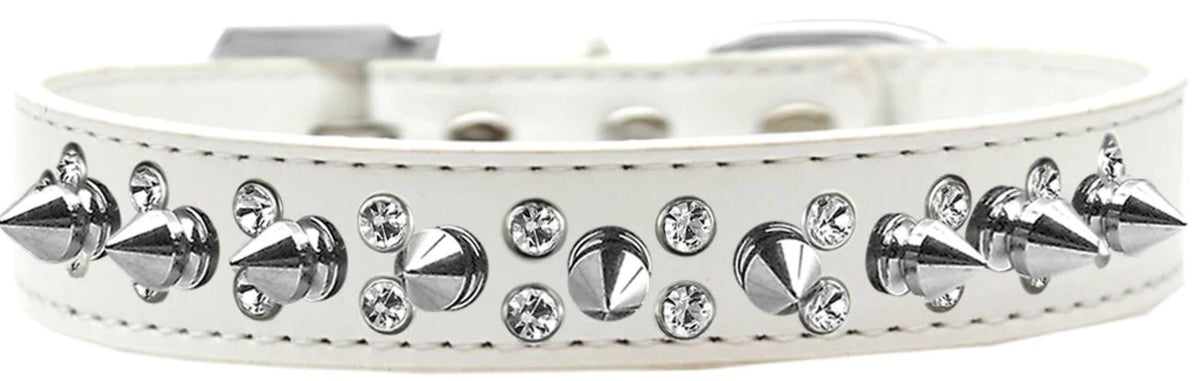 Pet and Dog Spike Collar, Double Crystal & Silver Spikes White 18