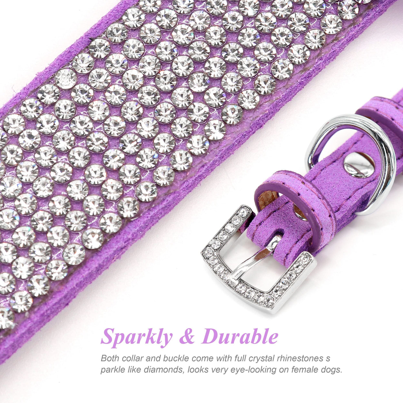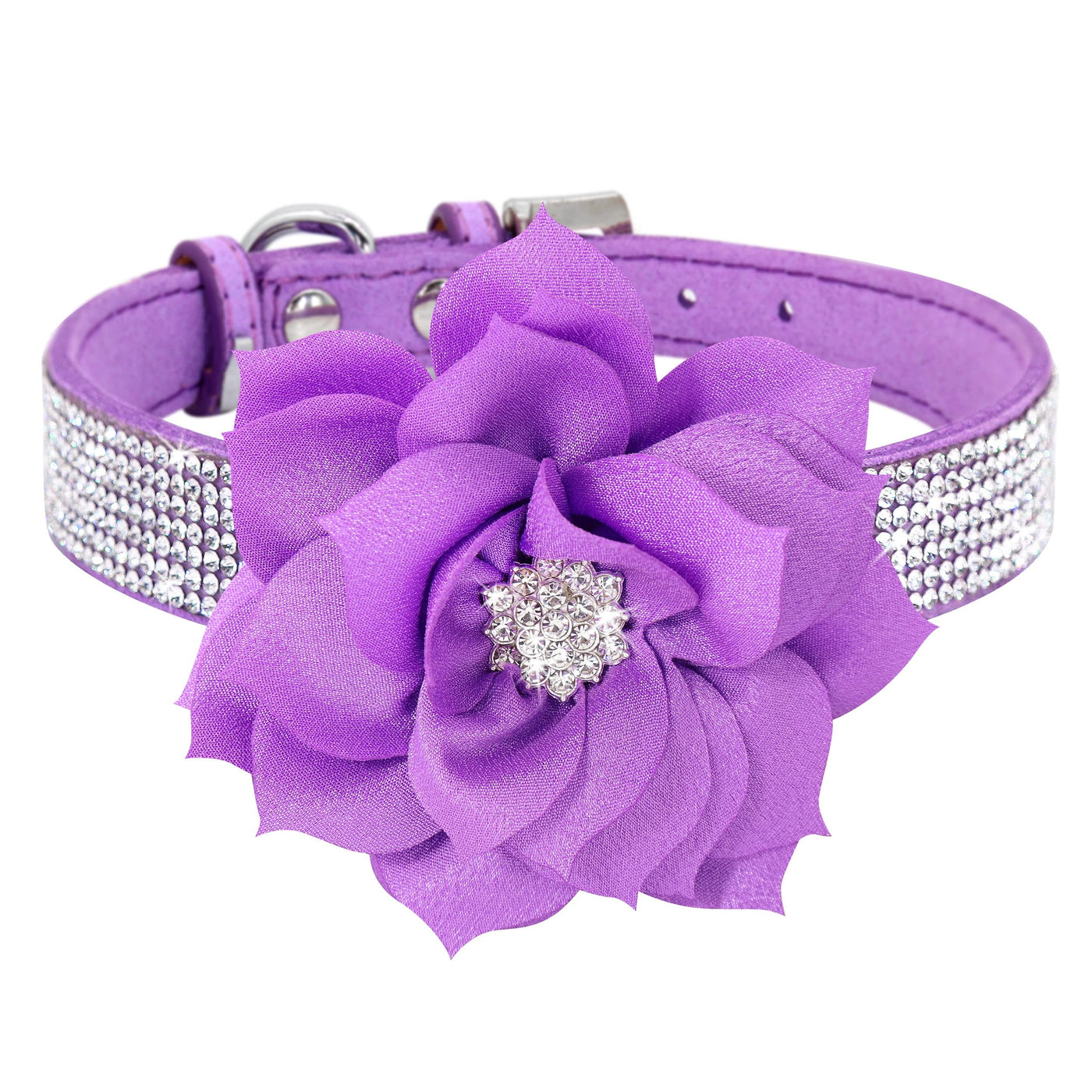 Pet Artist Bling Dog Collars For Small Puppy Dogs, Sparkling Rhinestone Dog Collar With Flower, Soft Suede Purple Dog Collar Lea