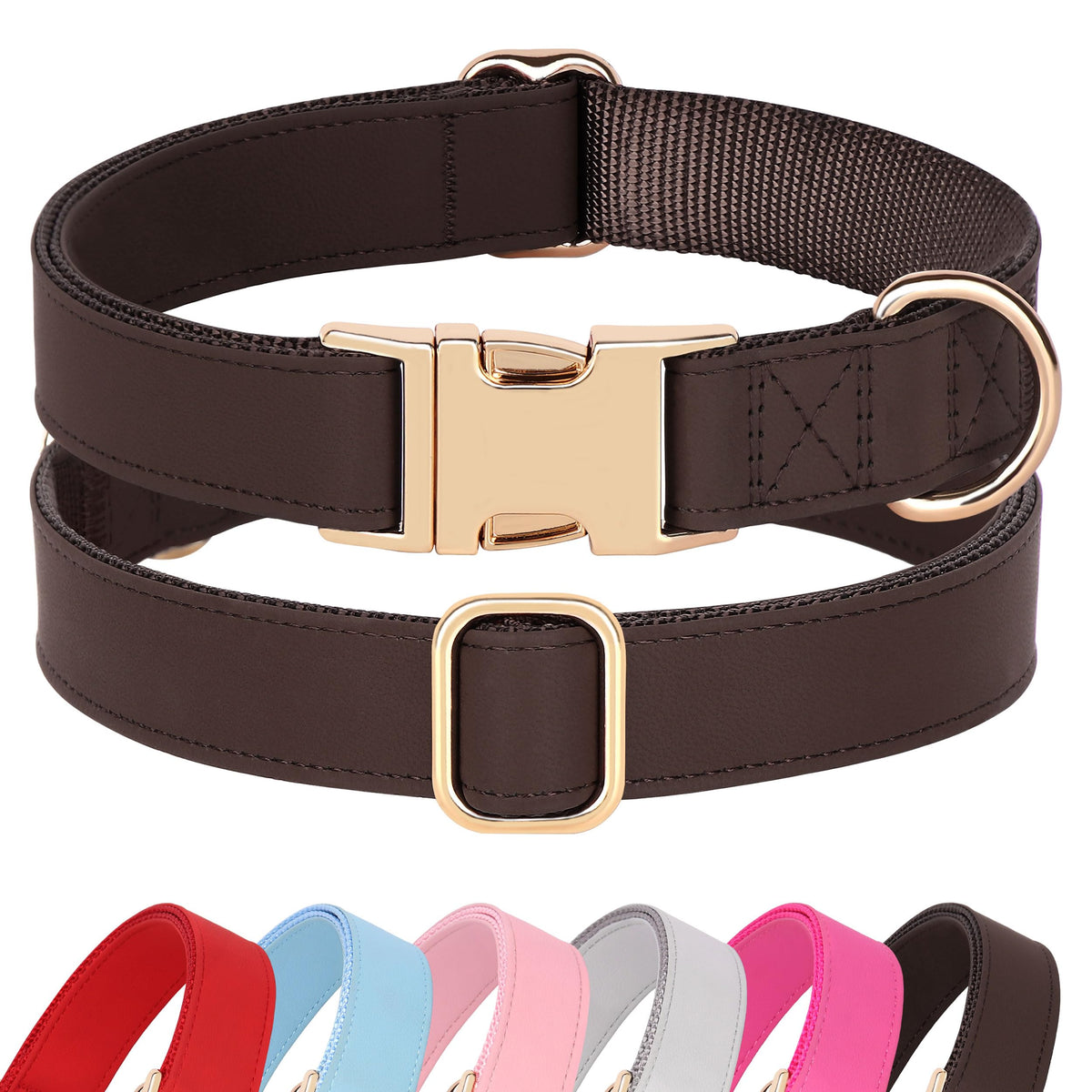 PET ARTIST Soft Solid Color Nylon and Leather Dog Collar Color:Blue,Brown,Grey,Red,Pink,Rose 3 Adjustable Sizes for Choose: S:Neck 9-14''(22-35cm),Width 3/4''(2.0cm) M:Neck 13-19''(32-48cm),Width 1.0''(2.5cm) L:Neck 16-27''(40-67cm),Width 1.0''(2.5cm) *Make sure to measure your dog's neck size for 2 fingers room before purchasing. *If any of the measurements are between two sizes or it's a growing puppy, PLEASE CHOOSE LARGER SIZE. Ideal for Small/Medium/Large Breeds like Bichon Frise,Chihuahua,French Bulldog, German Shepherd,Doberman Pinscher,Golden Retriever,Labrador,Alaskan Malamute,Labrador Retriever,Pit bulls etc. Features: 1.Our dog collar is made of durable pu leather and fine nylon webbing,solid and durable,suitable for different scenarios.Whether walking,hiking, or training, it will have a good effect 2.We have many colors for your choice,Blue Red Brown Grey Pink Rose, You don't need to worry about choosing a color about a boy or a girl dog collar, each color can show uniqueness of your dog.Whether you take your dog walking, hiking, or attending weddings, pet parties, it surely will let your dog be a focus. 3.Indestructible heavy duty metal hardware are make it more hardwearing, which is more durable than plastic buckle.In most emergency situations, you can quickly and easily remove your puppy collar with clip closure. 4.The collar does not stretch itself, please make sure leave ONLY 2 fingers between collar and dog neck. A properly fitting collar and harness won't leave any room for your dog to chew.Measure your dog's NECK carefully and refer to SIZE CHART before order to make sure PET ARTIST leather dog collar will fit well. 5.Recommended to use with PET ARTIST dog leash,dog harness to completed your pup's outdoor walking accessories.