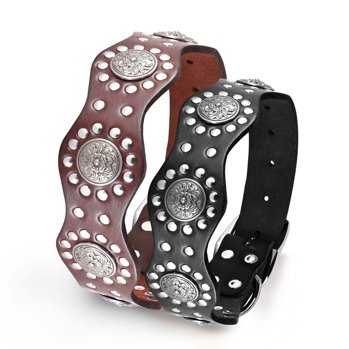 PET ARTIST Genuine Leather Dog Collar,Unique Design & Sturdy Leather,Heavy duty Dog Collar,fit for Rottweiler Pitbull Medium&Large Dogs