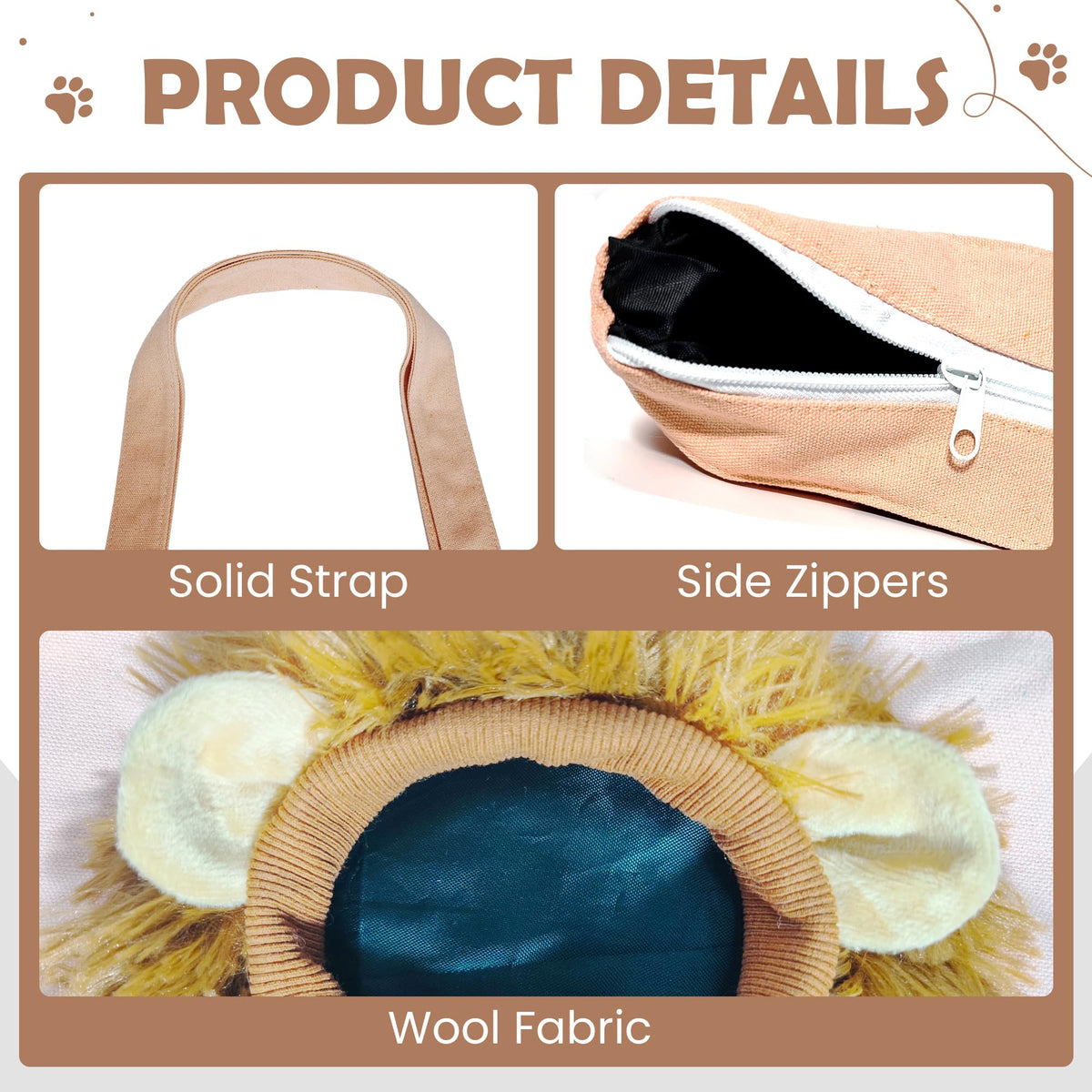 Pet Canvas Shoulder Carrying Bag, Cute Lion Shaped Cat Carrier, S Size Portable Kitten & Puppy Tote, Cozy Carriers For Small Dog
