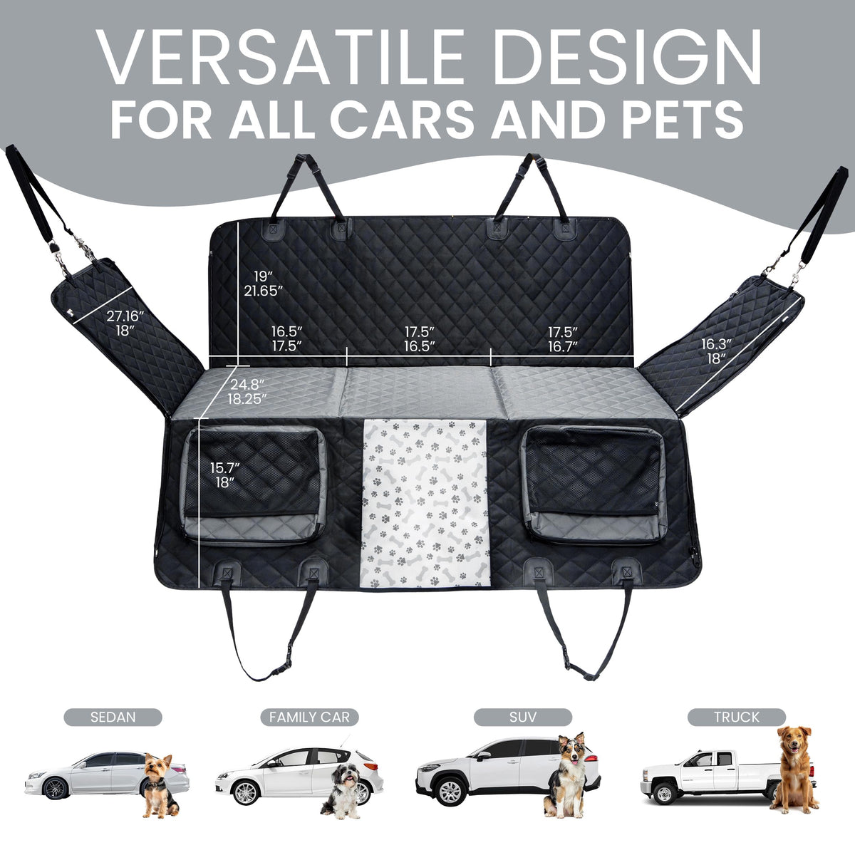 Give Your Furry Friend The Ultimate Travel Experience With The Hard Bottom Car Seat Cover For Dogs. This Durable And Thoughtfully Designed Product Transforms Your Cars Back Seat Into A Spacious And Comfortable Resting Area, Making Every Journey A Breeze For You And Your Dog. Whether Its A Quick Trip To The Vet Or A Cross-Country Road Trip, This Extender Offers Unmatched Comfort And Practicality. Crafted From 900D Oxford Fabric, The Sajoda Back Seat Extender Provides Exceptional Durability. The Heavy-Duty Material, Combined With Doubled-Up Stitching, Ensures That It Resists Tears And Scratches From Even The Most Enthusiastic Pets. Its Waterproof Surface Keeps Mud, Slobber, And Spills From Reaching Your Car Seats, Making Cleanup As Simple As A Quick Wipe With A Damp Cloth Followed By A Dry One. The Extenders Easy Setup Means Youll Spend Less Time Fumbling And More Time On The Road. Simply Insert The Hard Bottom Panels Into The Sleeves, Lay The Extender Across Your Back Seat, And Secure The Adjustable Straps Around Your Cars Headrests And Rear Handrails. In Just Minutes, Your Car Transforms Into A Secure Haven For Your Pet. Designed With Convenience And Longevity In Mind, Sajodas Back Seat Extender Fits Most Cars, Suvs, And Trucks. Its Ideal For Dog Owners Who Value Reliability, With A Lifetime Warranty Ensuring Your Peace Of Mind. Whether Youre Dealing With Wet Paws, Shedding Fur, Or Playful Claws, This Extender Provides The Ultimate Protection For Your Car Interior While Keeping Your Dog Comfortable And Secure. With Sajodas Back Seat Extender, Every Road Trip Becomes An Adventure Without Pressure. Invest In A Product That Prioritizes Both Your Dogs Comfort And The Cleanliness Of Your Vehicle. Choose Sajoda And Travel With Confidence.