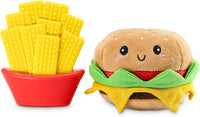 Q: Are these toys safe for aggressive chewers?A: Yes, the Chewburger & Fries toys are designed with durability in mind, featuring reinforced stitching and tough, non-toxic materials. While they are suitable for aggressive chewers, it's important to supervise your dog during playtime as no toy is completely indestructible.