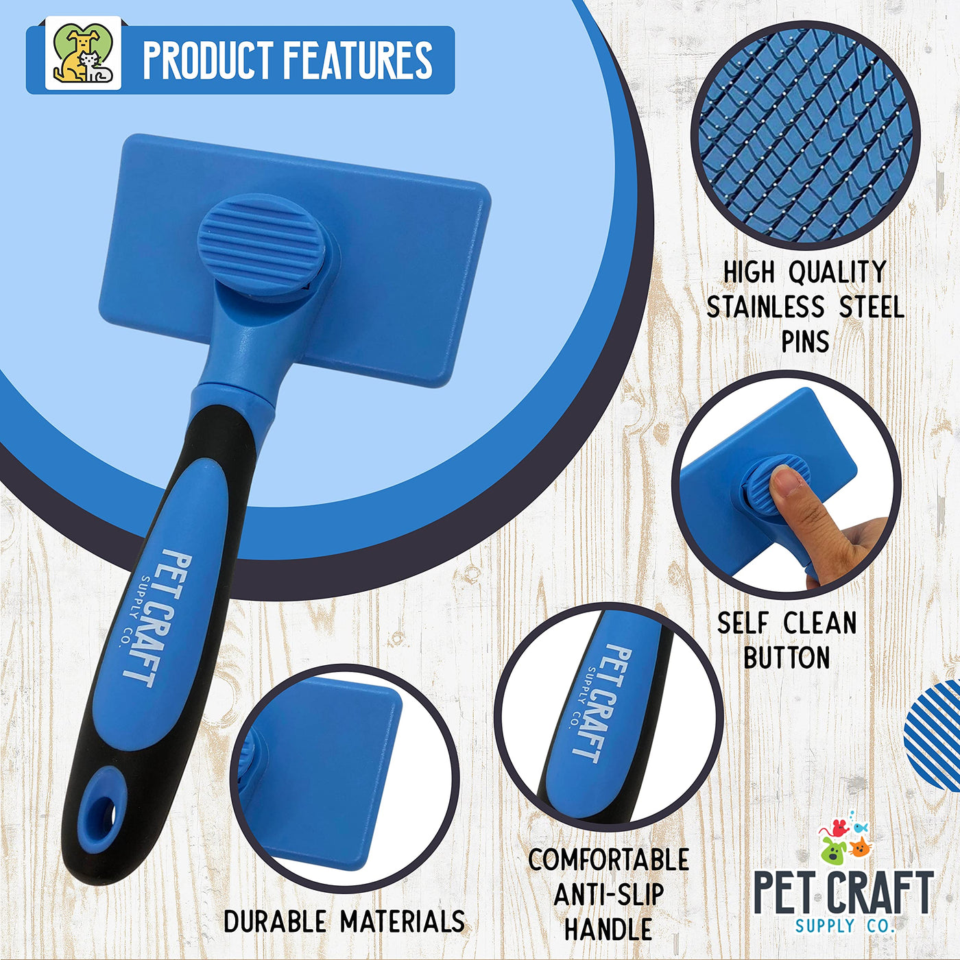 Pet Craft Supply Self Cleaning Grooming Slicker Pet Brush For Cats And Dogs Short Long Haired Fur Small Medium Large Metal Pin Bristle Comb Undercoat Deshedding Dematting Detangler Puppy Kitten Blue