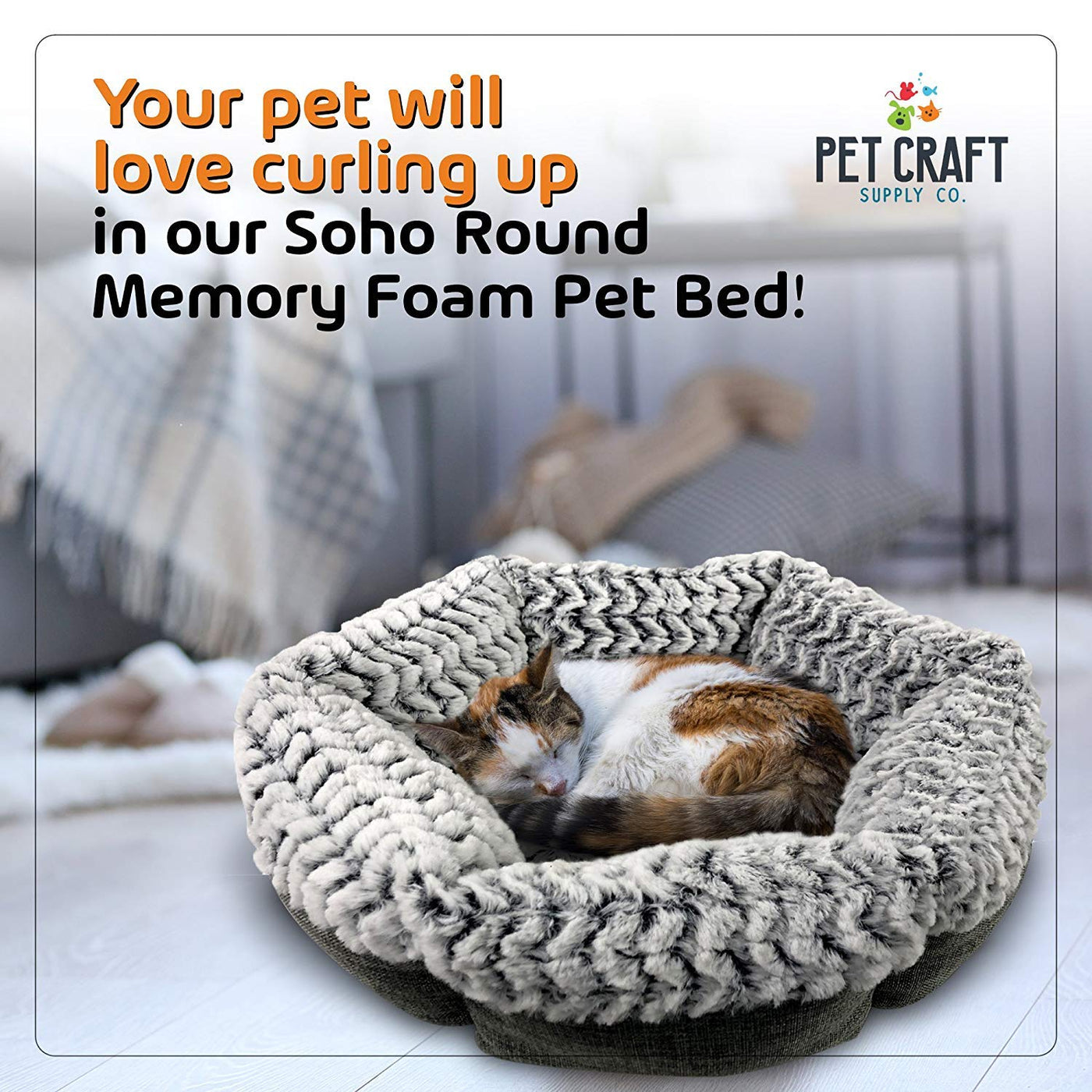 No matter how comfortable your pet seems on your living room rug, they still need a proper bed.Did you know that many pets start showing signs of aggression due to stress? It can be caused by a number of factors. But most of the time, the causes are unknown and unexpected.Nevertheless, your fur baby deserves a place to retreat to when they need a safe space. Lucky for you, we've got just the perfect product.Give your furry companion a place to rest with the Pet Craft Supply Soho Round Bed.Your pet deserves the best things, and that includes their very own bed. With our Soho round pet bed, your furry friend will have the perfect space for relaxing whenever they need it. They'll love curling up on the pillowy surface that is soft, but firm enough to offer ample support.Speaking of support, these pet beds are made with orthopedic memory foam. It's designed to hug every contour of your pet's body, helping prevent the occurrence of strained limbs. But more than that, it provides all-angle support so your fur baby feels safe and secure the moment they plop onto the mattress.We use pet-friendly products in the manufacturing process. You won't have to worry about sharp tips accidentally poking your pet, or harmful fumes getting absorbed into their little bodies. Plus, no matter how dirty these pet beds get, you can always clean them easily. Just throw them in the washing machine, and hang them out to dry!More reasons your dog or cat will love with this pet bed:🐶 Great color options🐱 Size: 18 L x 18 W x 6 H inches 🐶 A fantastic gift for fur parentsSpoil your pet with the best bed ever. Add the Pet Craft Supply Soho Round Bed to your cart TODAY!