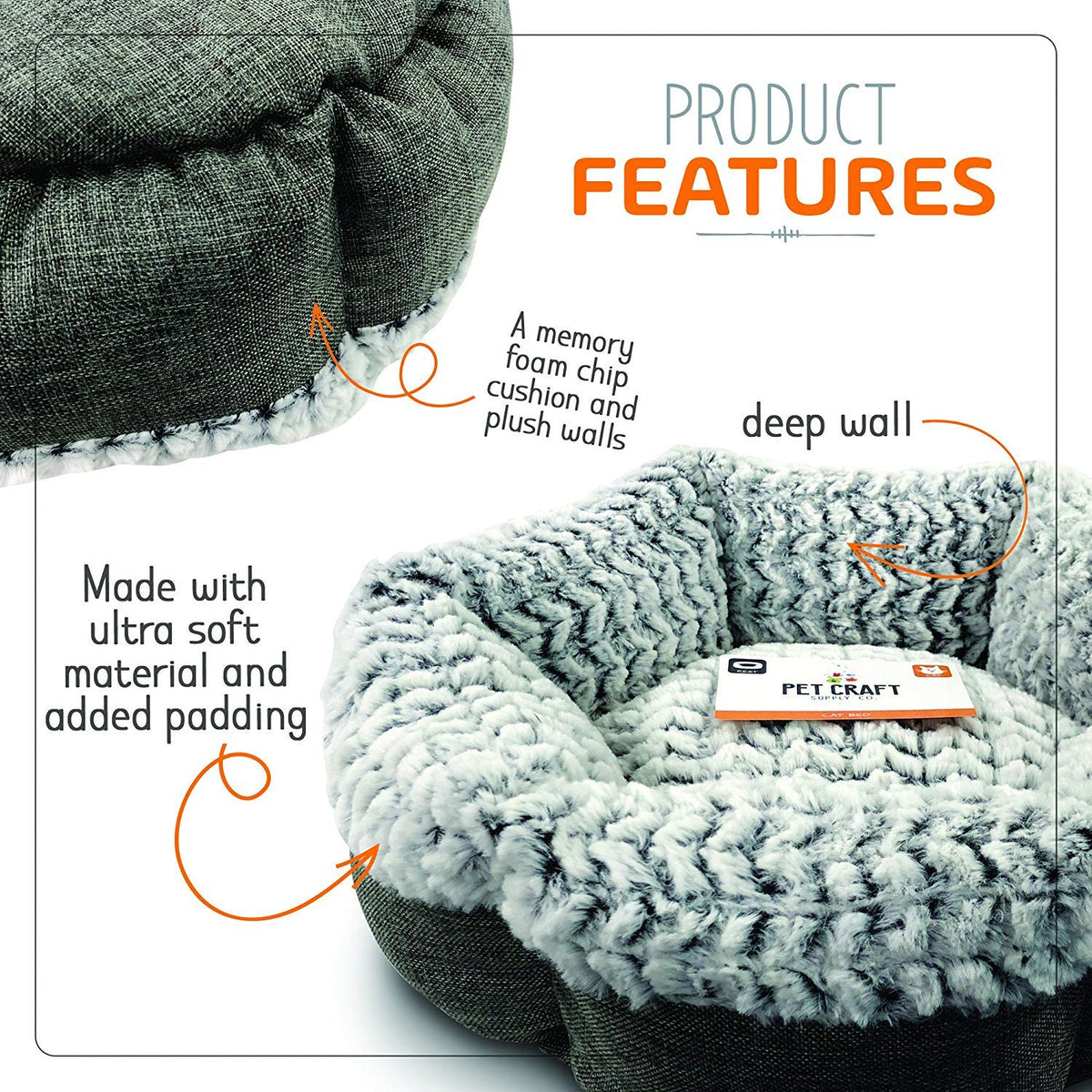 Pet Craft Supply Soho Round Cat Bed For Indoor Cats, Ultra Soft Plush, Memory Foam, Machine Washable, Calming Cat Bed
