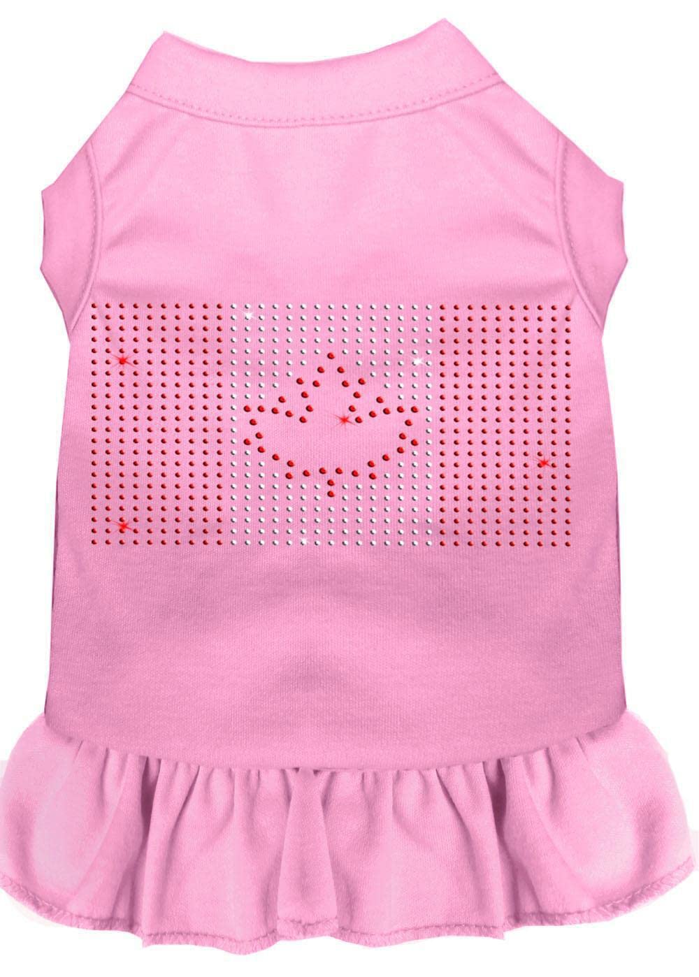 Pet Dog & Cat Dress Rhinestone, "Canadian Flag" Bright Pink MD (6-10 lbs.)