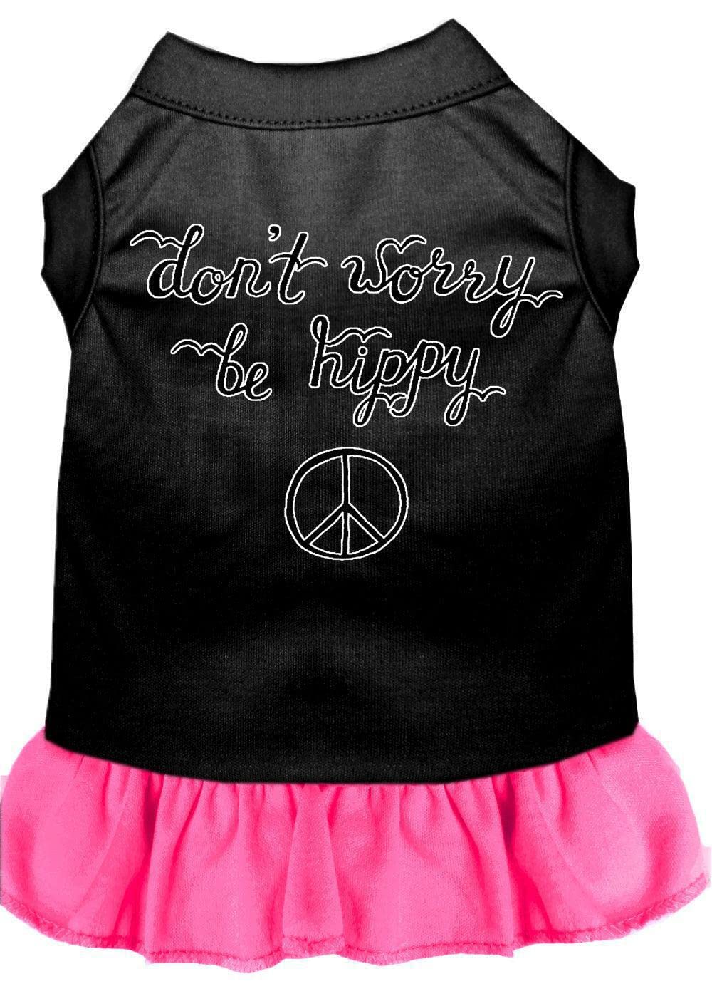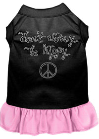 Pet Dog & Cat Dress Screen Printed, 'Don'T Worry, Be Hippy' Black W/Light Pink 2Xl (20-25 Lbs.)