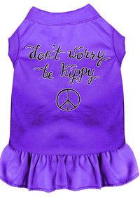 Pet Dog & Cat Dress Screen Printed, 'Don'T Worry, Be Hippy' Purple 2Xl (20-25 Lbs.)