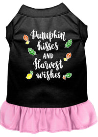 Pet Dog & Cat Dress Screen Printed, 'Pumpkin Kisses And Harvest Wishes' Black W/Light Pink Sm (3-6 Lbs.)