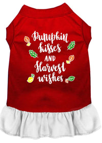 Pet Dog & Cat Dress Screen Printed, 'Pumpkin Kisses And Harvest Wishes' Red W/White Xs (0-3 Lbs.)