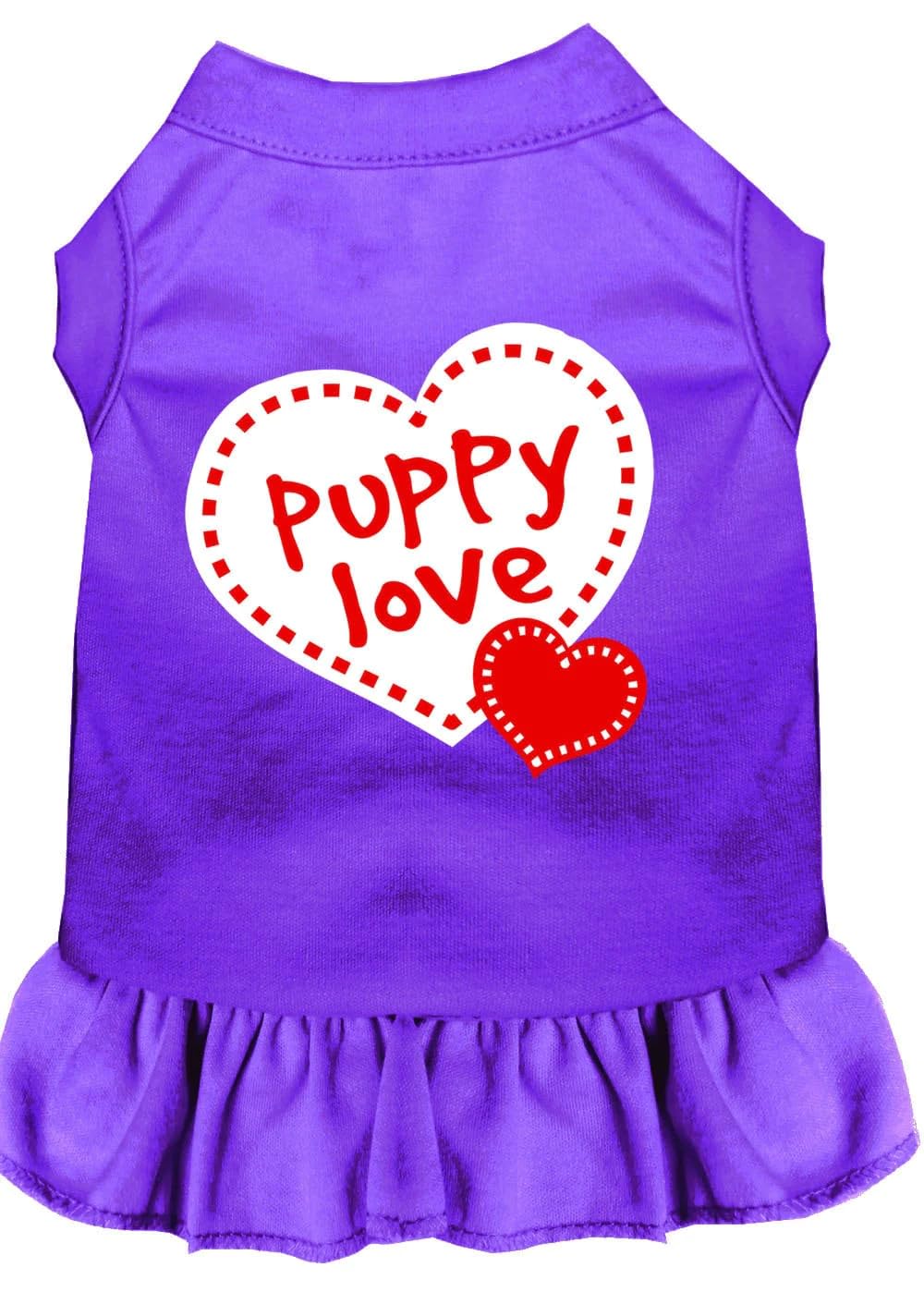 Pet Dog & Cat Dress Screen Printed, Puppy Love Black W/Red SM (3-6 lbs.)
