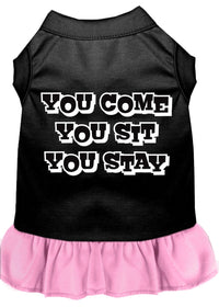 Pet Dog & Cat Dress Screen Printed, You Come, You Sit, You Stay Black W/Light Pink SM (3-6 lbs.)