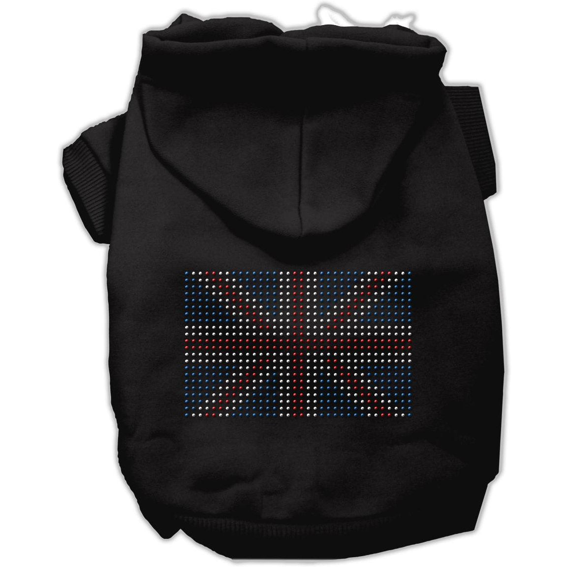 Pet, Dog & Cat Hoodie Rhinestone, British Flag Black XS (0-3 lbs.)