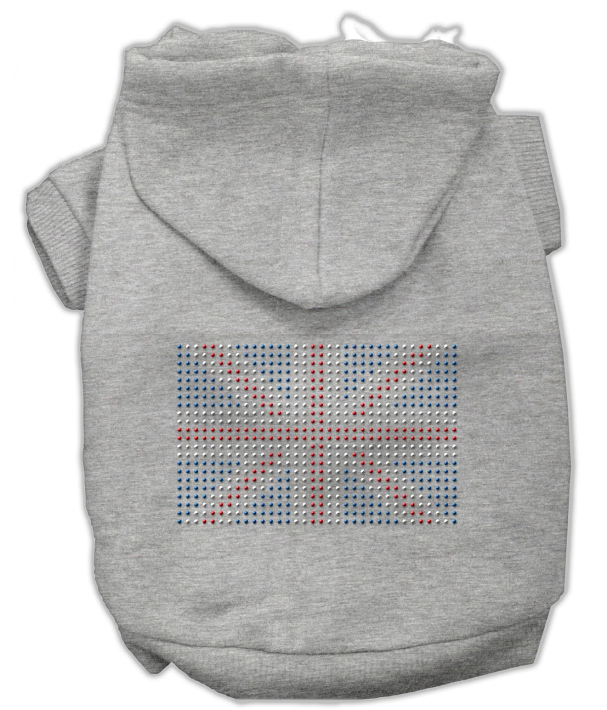 Pet, Dog & Cat Hoodie Rhinestone, British Flag Gray 3XL (25-35 lbs.)