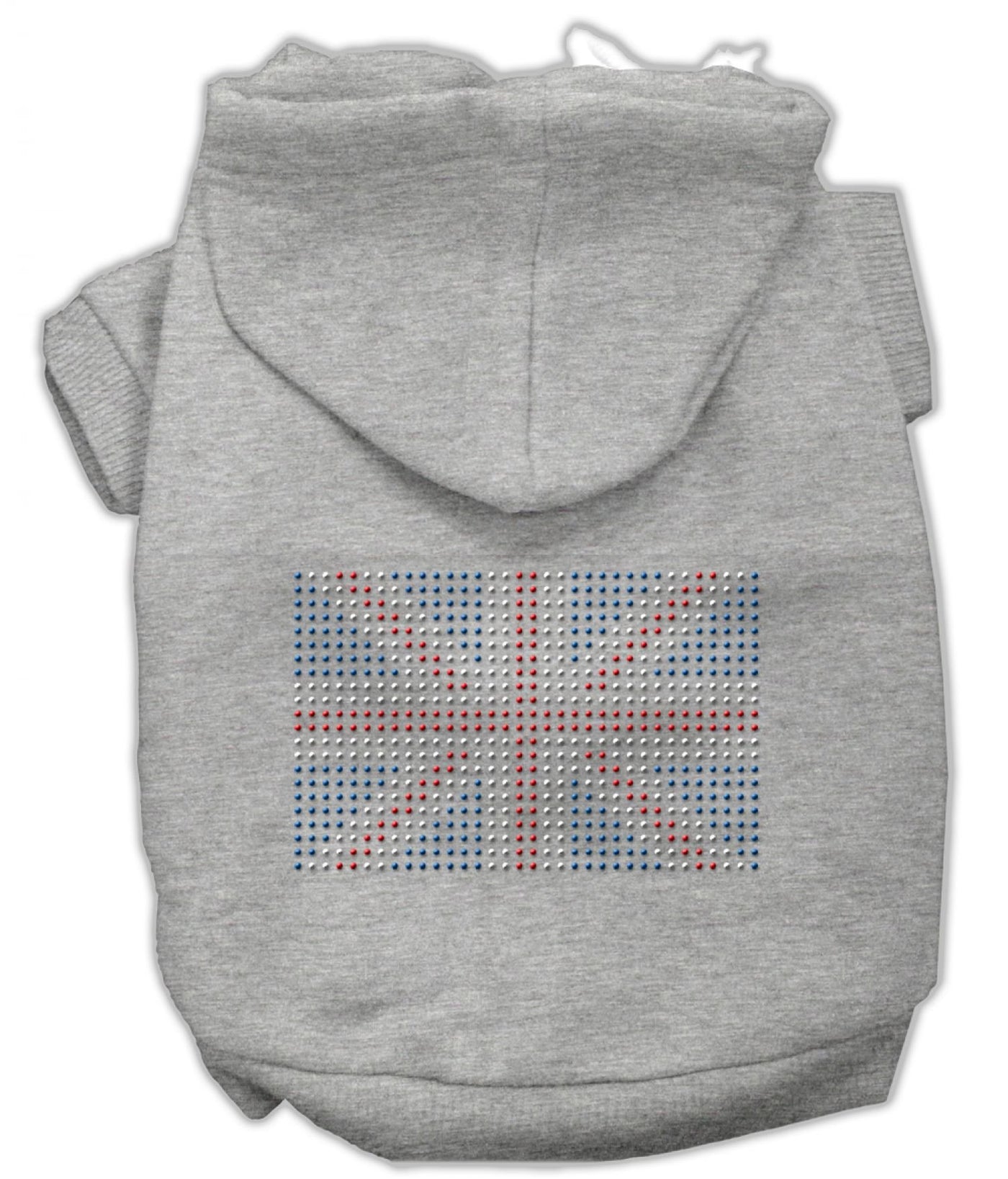 Pet, Dog & Cat Hoodie Rhinestone, "British Flag" Gray SM (3-6 lbs.)