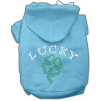 Pet, Dog & Cat Hoodie Rhinestone, "Four Leaf Clover Outline" Baby Blue 3XL (25-35 lbs.)