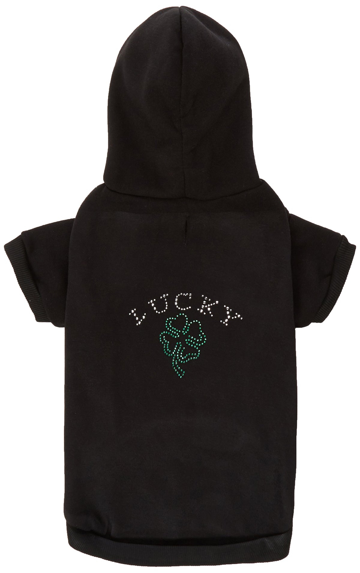 Pet, Dog & Cat Hoodie Rhinestone, "Four Leaf Clover Outline" Black SM (3-6 lbs.)