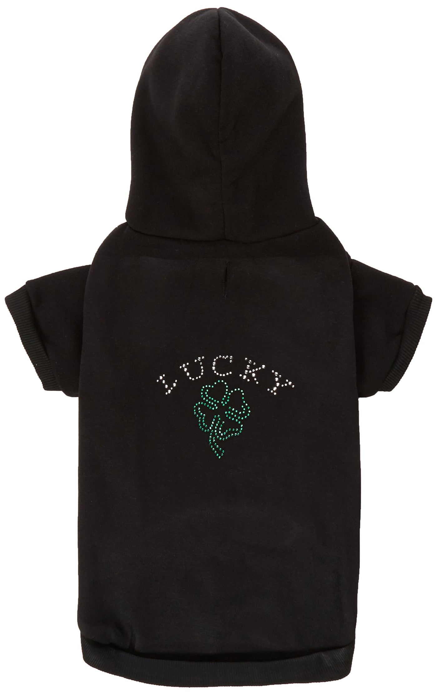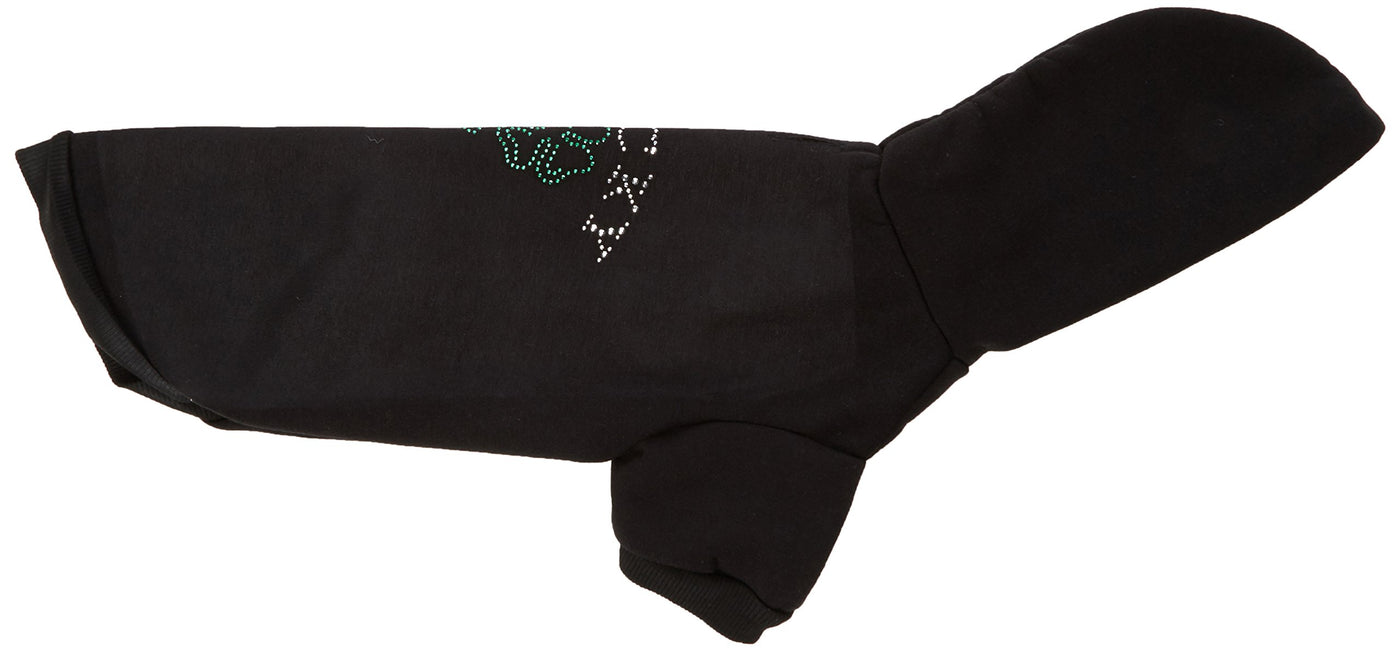 Pet, Dog & Cat Hoodie Rhinestone, "Four Leaf Clover Outline" Black XL (14-20 lbs.)
