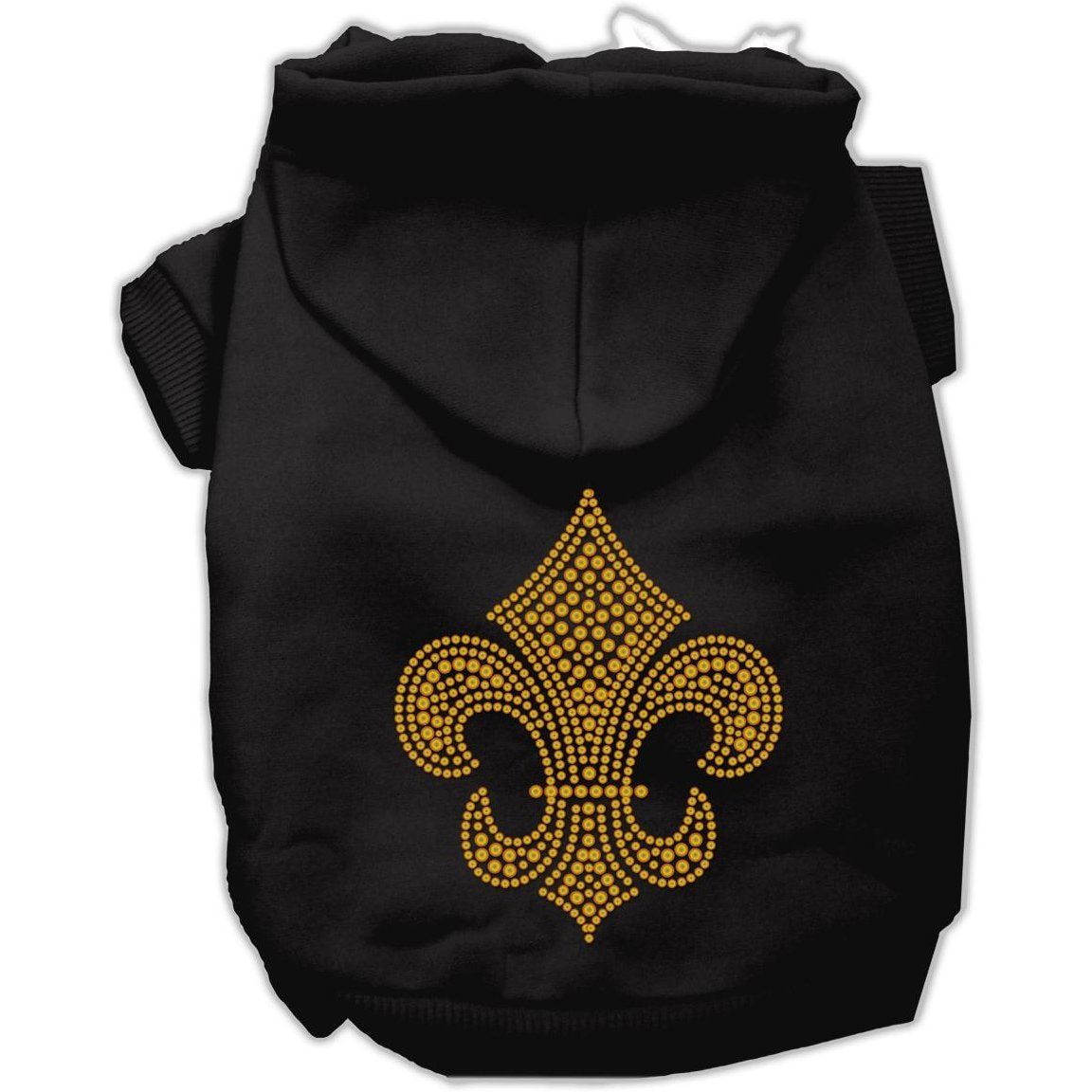 Pet, Dog & Cat Hoodie Rhinestone, "Gold Fleur De Lis" Black SM (3-6 lbs.)