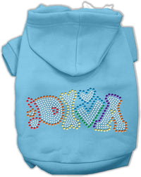 Pet, Dog & Cat Hoodie Rhinestone, 'Technicolor Diva' Baby Blue Xl (14-20 Lbs.)