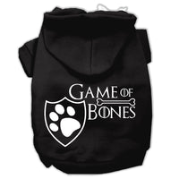 Pet Dog & Cat Hoodie Screen Printed, 'Game Of Bones' Black Md (6-10 Lbs.)