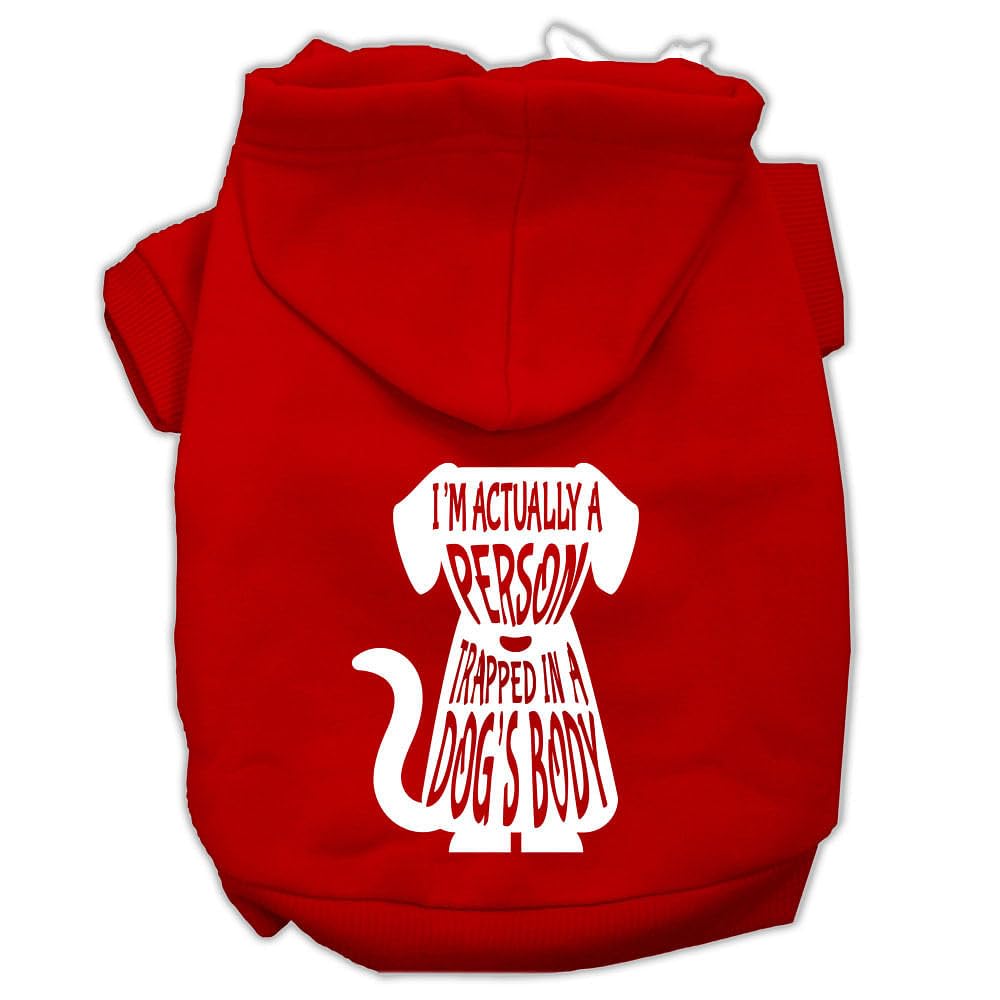 Pet Dog & Cat Hoodie Screen Printed, 'I'M Actually A Person Trapped In A Dog'S Body' Red Xs (0-3 Lbs.)