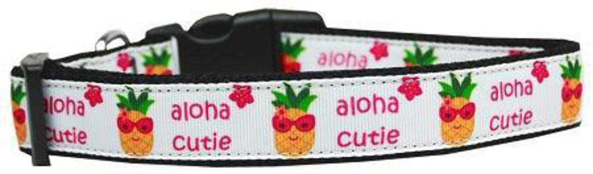 This 1" wide size medium dog collar is made of durable nylon with a high quality ribbon overlay. It is adjustable to fit a neck size from 10-18".Product Summary : New Pet Products/Aloha Cutie Nylon Dog Collar@Dog Collars and Leashes/Nylon Dog Collars/Aloha Cutie Nylon Dog Collar@Pet Products for Events and Holidays/Souvenir Pet Gear/Aloha Cutie Nylon Dog Collar@Pet Products for Events and Holidays/Summer Pet Supplies/Aloha Cutie Nylon Dog Collar.