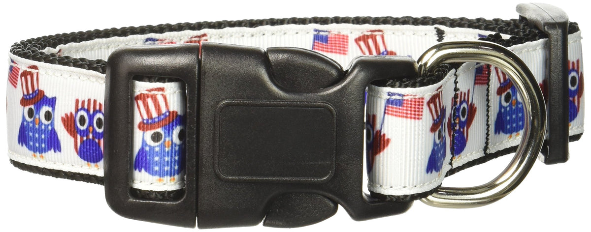 Pet Dog & Cat Nylon Collar or Leash, "American Owls" MD Collar