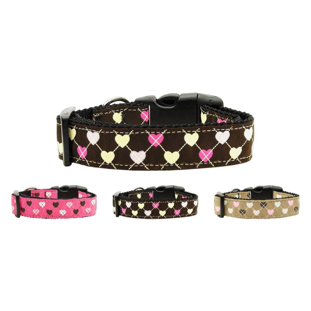 Pet Dog & Cat Nylon Collar or Leash, "Argyle Hearts" Bright Pink SM Collar