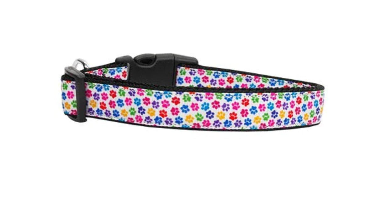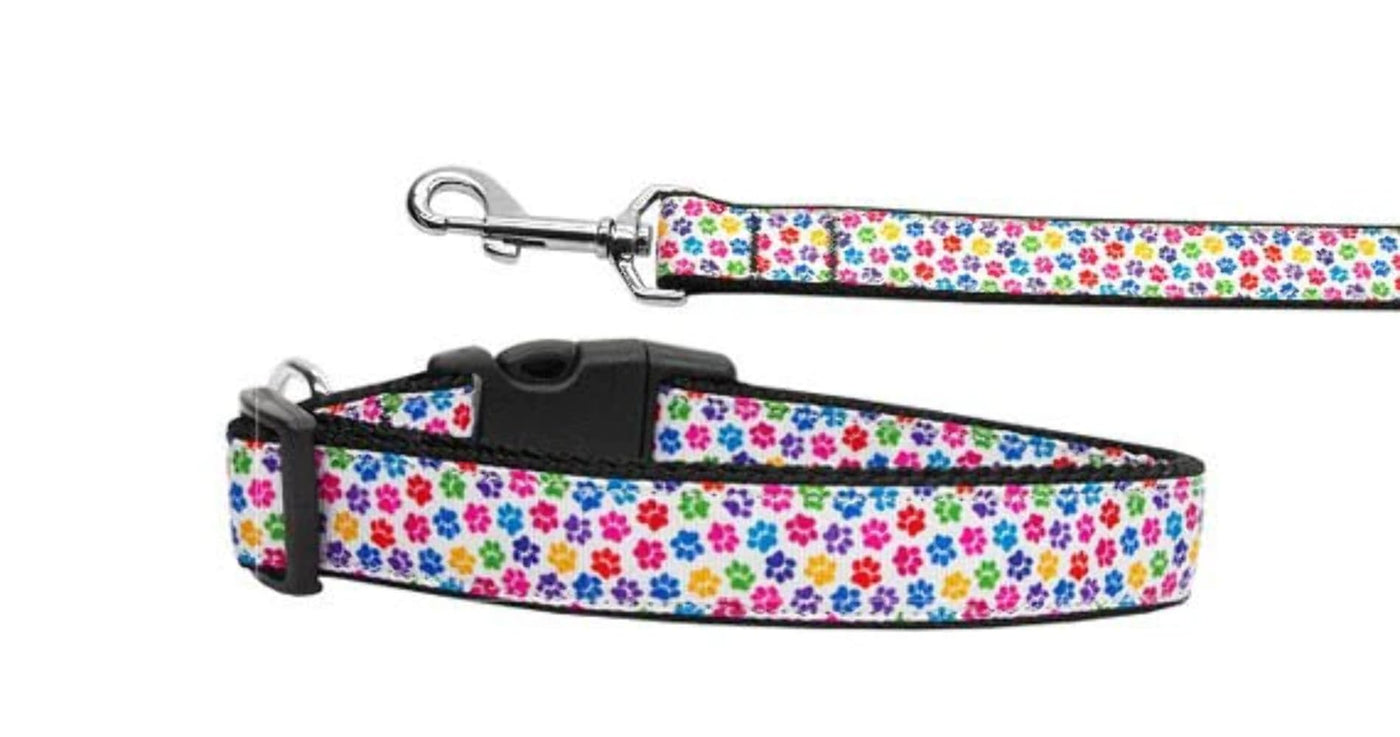 Pet Dog & Cat Nylon Collar or Leash, "Confetti Paws" SM Collar