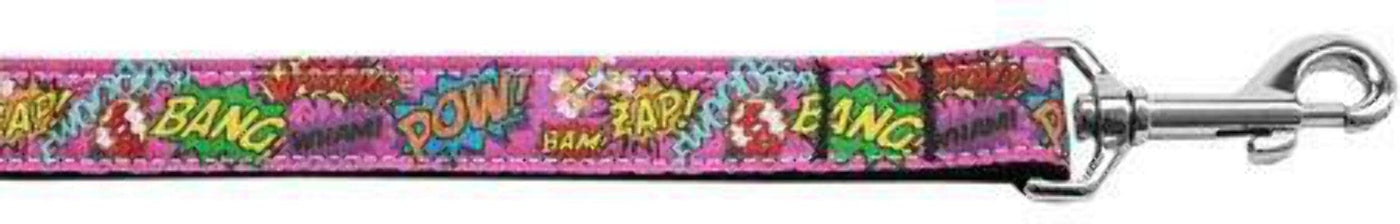 Pet Dog & Cat Nylon Collar or Leash, "Superhero Sound Effects Pink" 5/8" w x 4 ft. leash