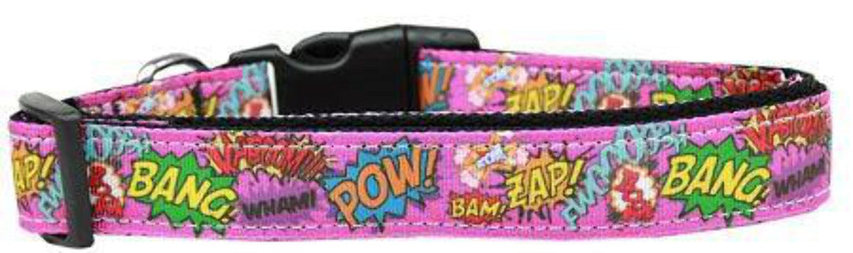 Pet Dog & Cat Nylon Collar or Leash, "Superhero Sound Effects Pink" Cat Collar