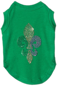 Pet Dog & Cat Shirt Rhinestone, "Mardi Gras Fleur De Lis" Emerald Green SM (3-6 lbs.)