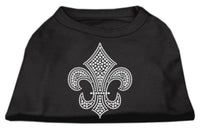 Pet Dog & Cat Shirt Rhinestone, "Silver Fleur De Lis" Black MD (6-10 lbs.)