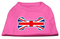 Pet Dog & Cat Shirt Screen Printed, 'Bone Shaped United Kingdom Flag' Bright Pink Xs (0-3 Lbs.)