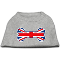 Pet Dog & Cat Shirt Screen Printed, 'Bone Shaped United Kingdom Flag' Gray Sm (3-6 Lbs.)