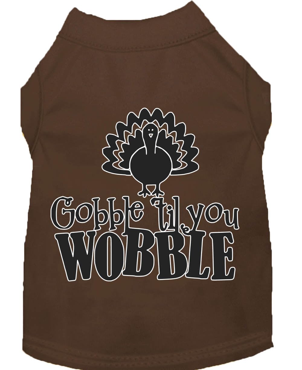 Pet Dog & Cat Shirt Screen Printed, "Gobble Til Ya Wobble" Brown XL (14-20 lbs.)