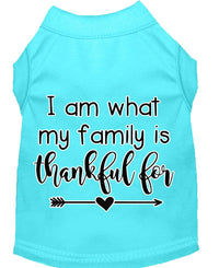 Pet Dog & Cat Shirt Screen Printed, "I Am What My Family Is Thankful For" Aqua MD (6-10 lbs.)