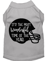 Pet Dog & Cat Shirt Screen Printed, "It's The Most Wonderful Time Of The Year (Football)" Gray SM (3-6 lbs.)