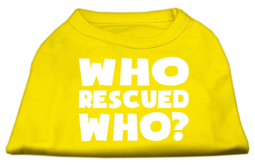 Pet Dog & Cat Shirt Screen Printed, 'Who Rescued Who?' Yellow Xl (14-20 Lbs.)